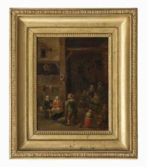Scène de taverne, huile sur panneau, 30x23 cm.Provenance: collection patricienne genevoise