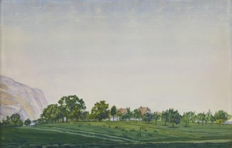 Campagne genevoise, aquarelle sur papier, 32x50 cm