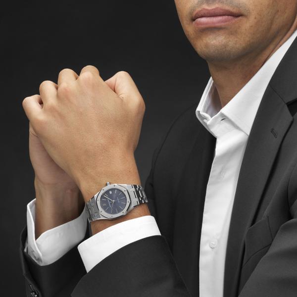 Cadran bleu, aiguilles et index bâtons argentés, réf. 5500, circ...