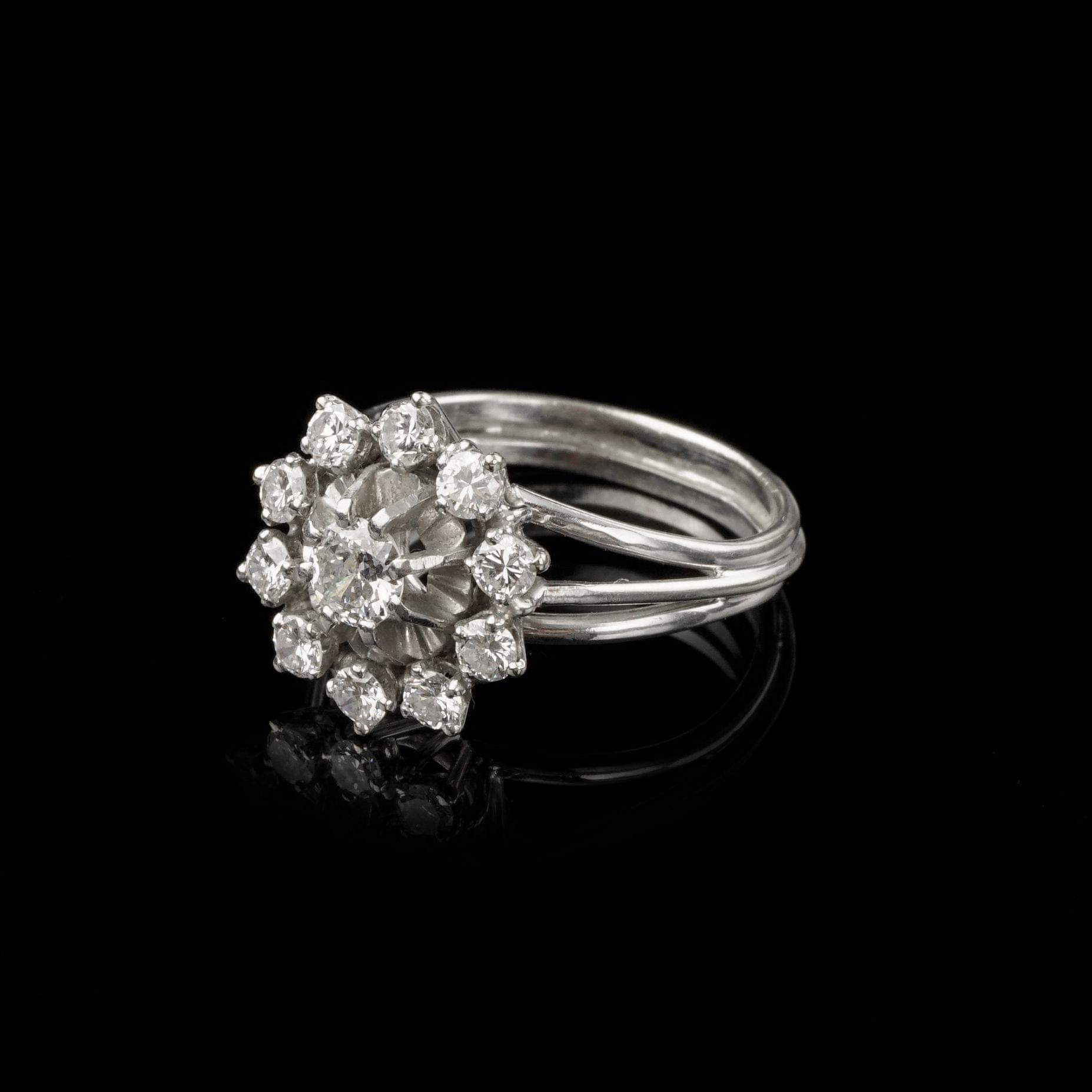 811. Bague marguerite sertie d'un diamant taille ancienne sur chaton illusion (env. 0,4 ct) entouré de diamants (env. 1 ct)