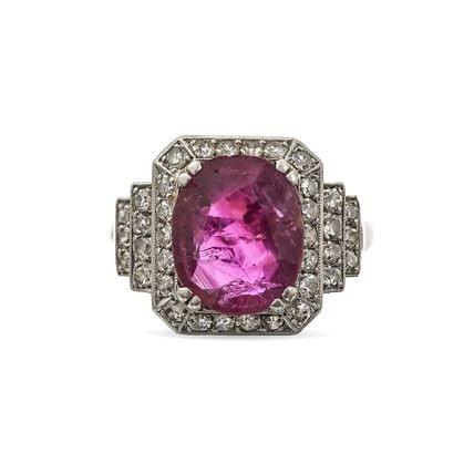 61. Bague sertie d'un rubis taille ovale (env. 5 ct) entouré de diamants