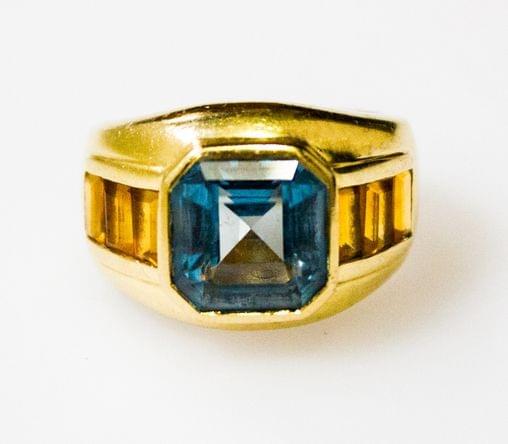 38. Bague sertie d'une topaze bleue épaulée de citrines