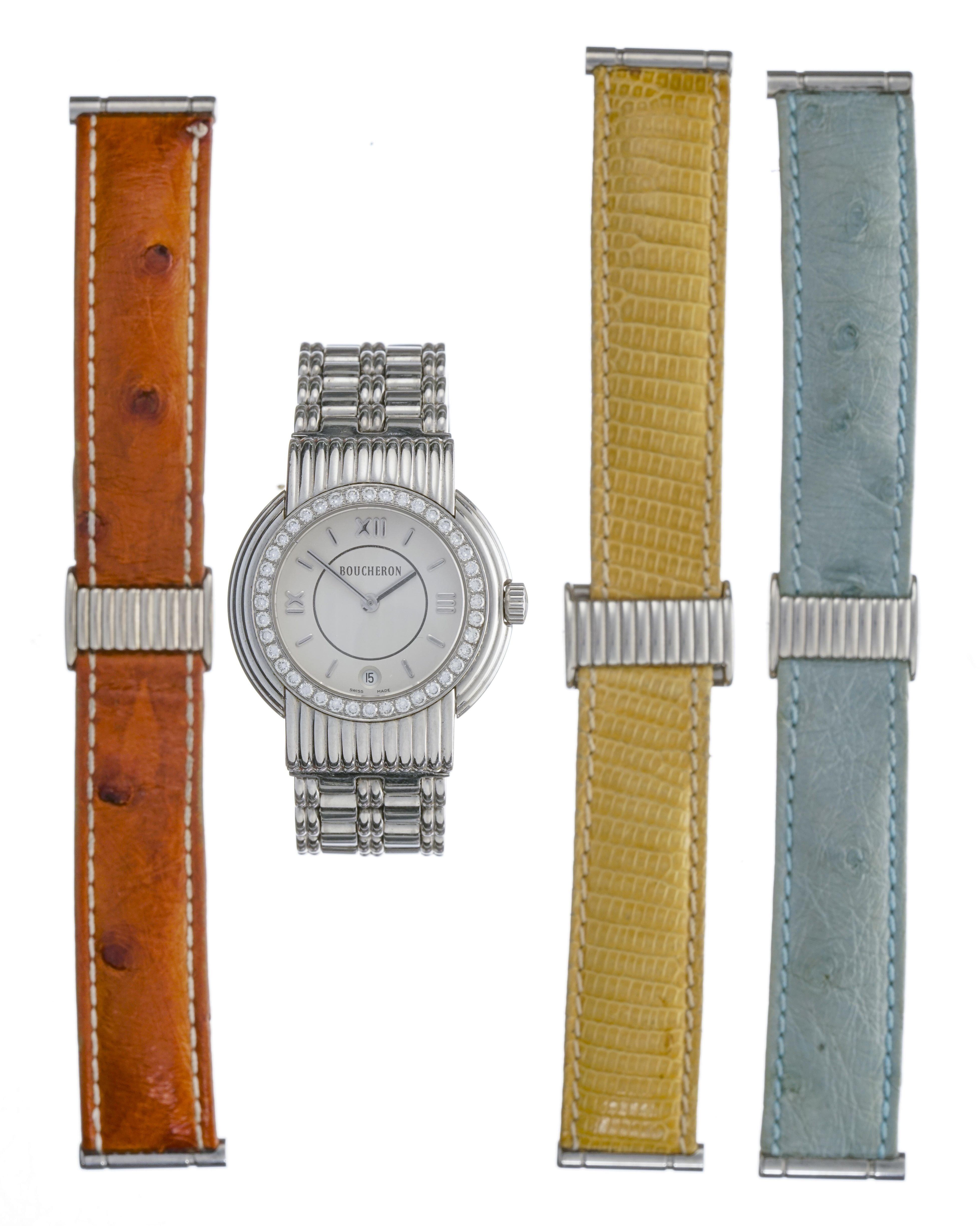 619. Boucheron, montre ronde à quartz sertie de diamants