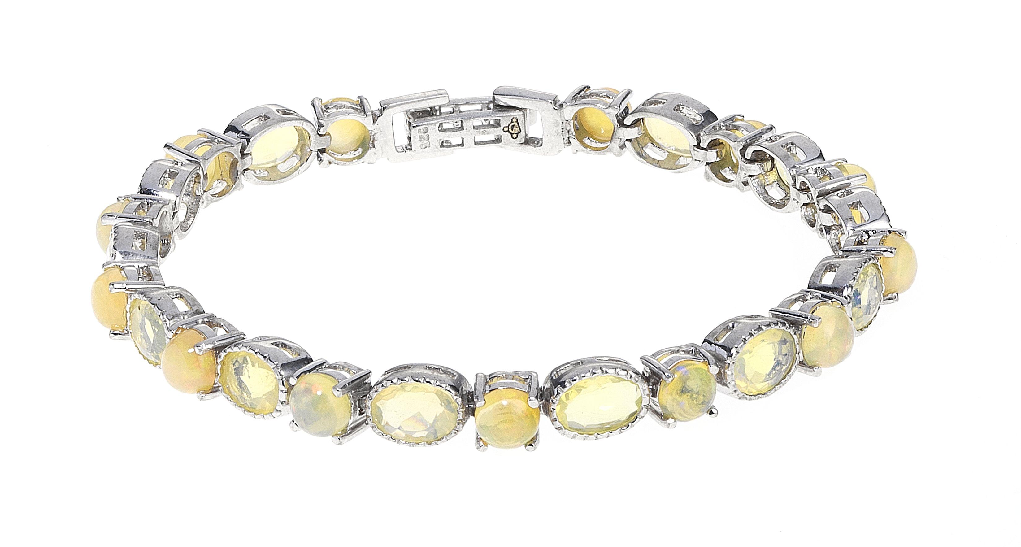 3064. *Bracelet ligne serti d'opales à fond blanc taille cabochon et ovale en alternance