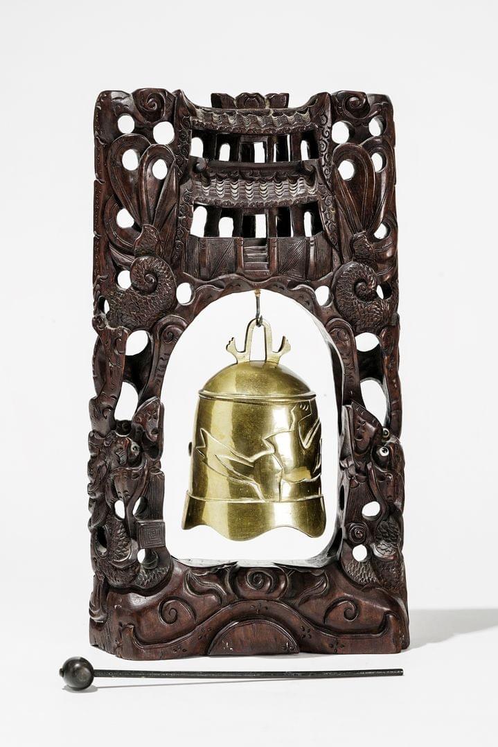 Montants sculptés à décor de dragons et nuées, battant, 41x21 cm