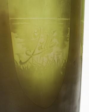Verre multicouche dégagé à l'acide à décor d'un paysage lacustre et de silhouettes d'arbres, H 48 cm