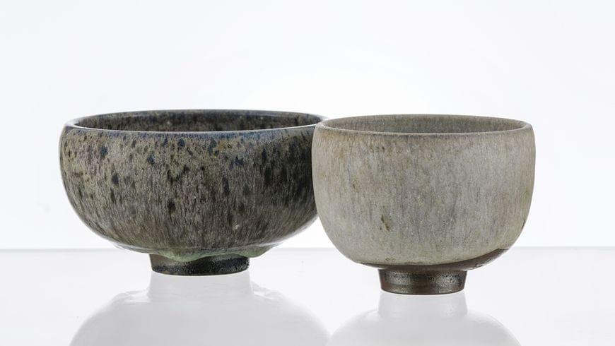 Coupe évasée japonisante à glaçure gris bleu, céramique émaillée...