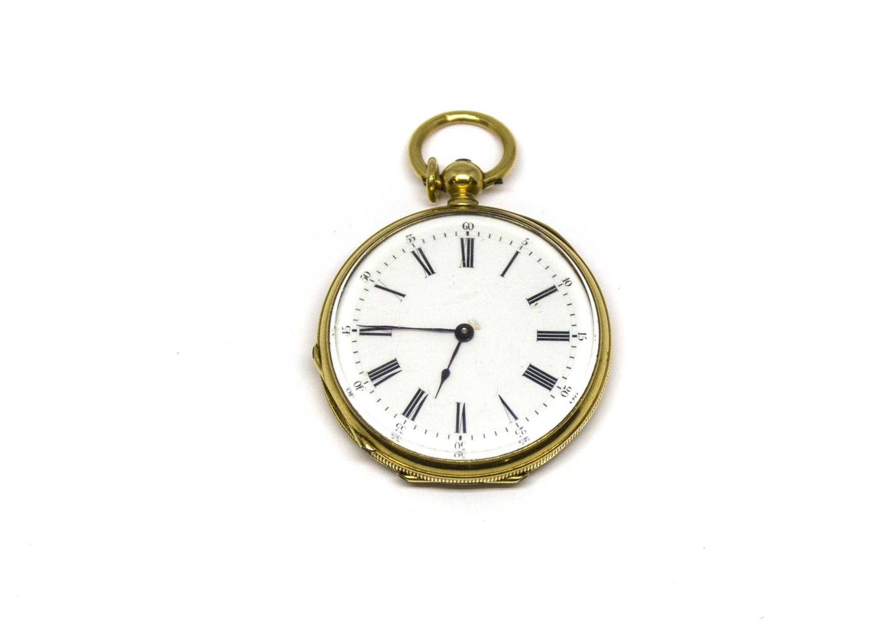 Cadran blanc émaillé, aiguilles dorées, chiffres romains bleus,...
