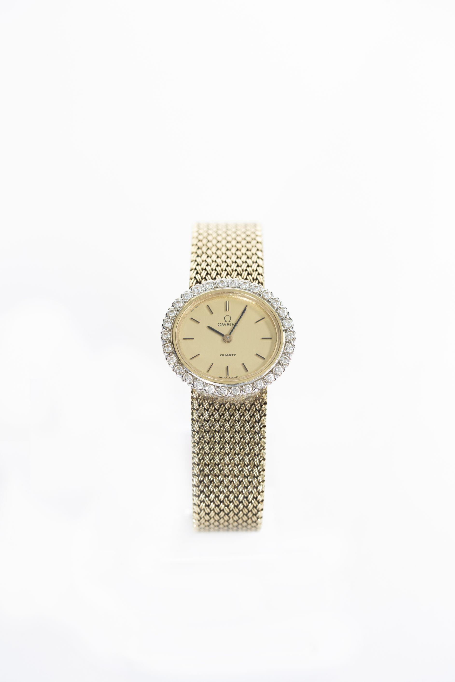 731. Oméga, montre bracelet ovale à quartz sertie de diamants (env. 0,6 ct)