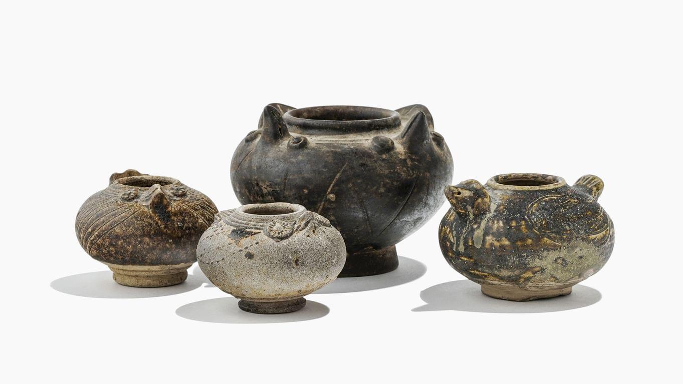 (1) Un génie ailé tenant deux félins par la queue (2) un homme t...