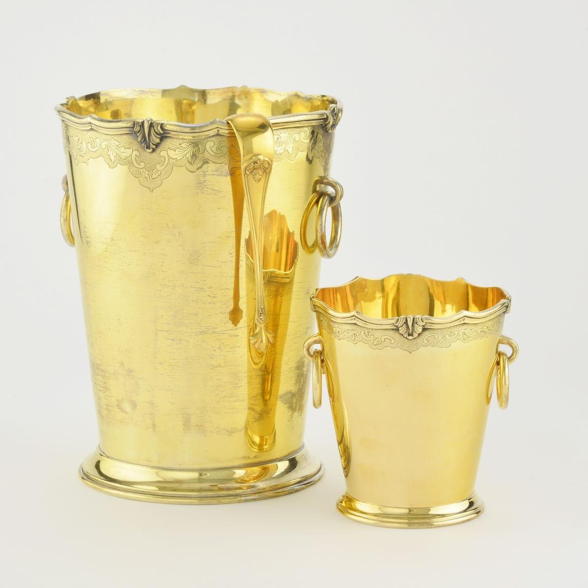 207. Seau à bouteille et seau à glaçons à bordure et motif gravé d'acanthes