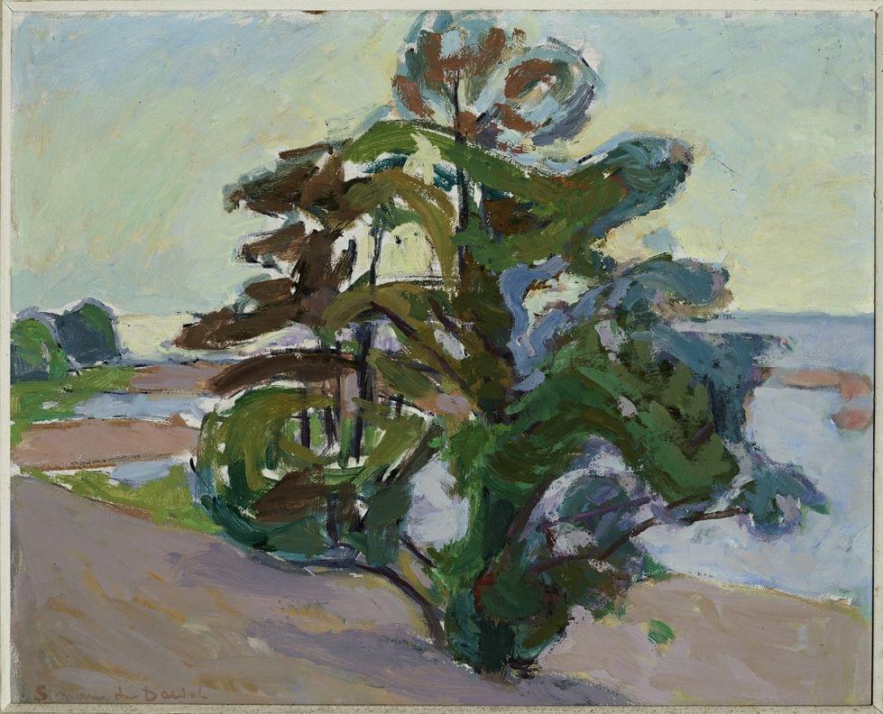 Arbre, huile sur pavatex, signée, 33x40 cm. Provenance : Château fribourgeois