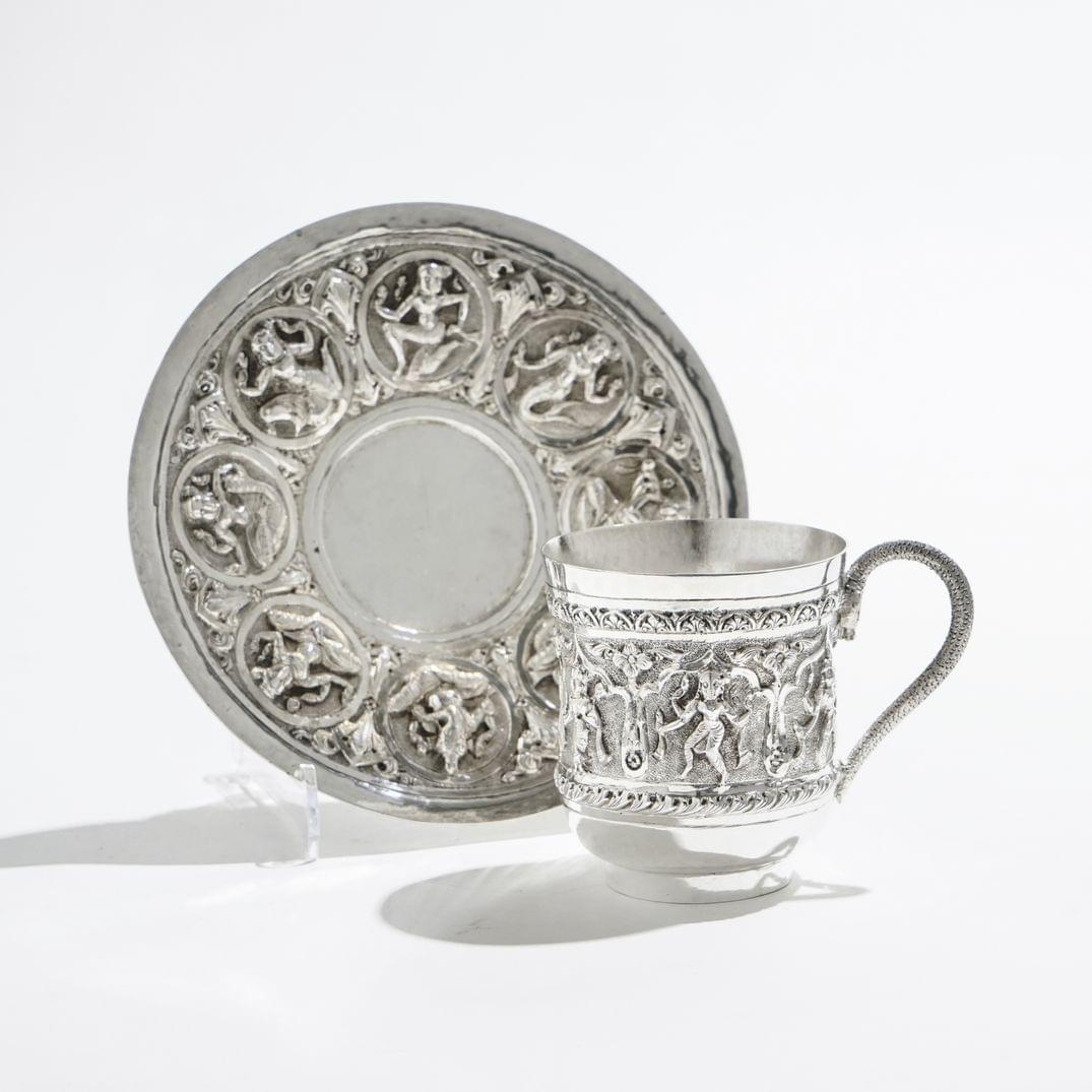 3256. Tasse et soucoupes à motif de dieux dans des médaillons, Inde coloniale