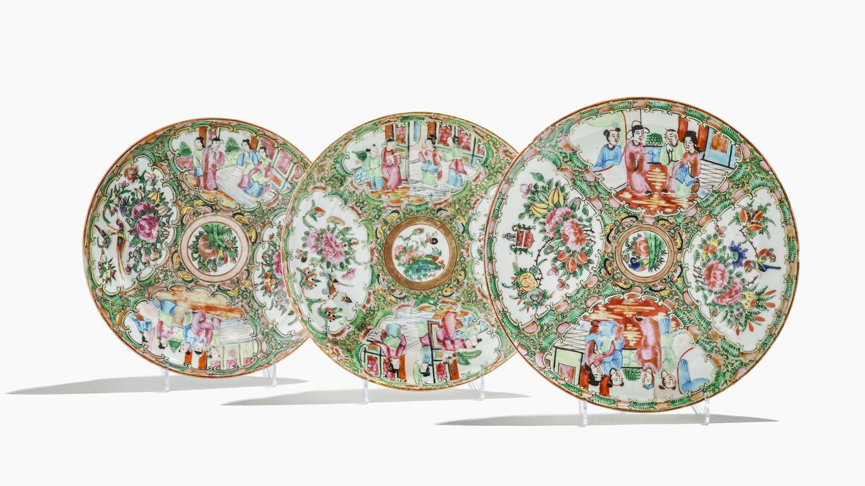 3451. Trois assiettes, Canton, Chine, XIXe s
