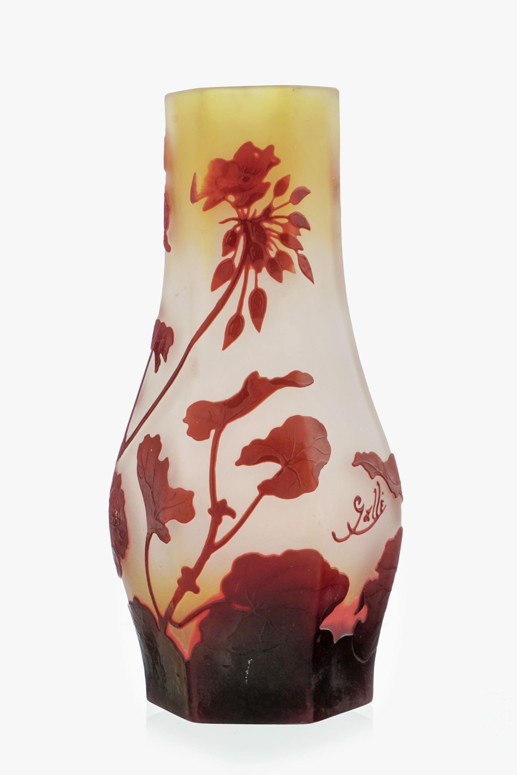 Verre multicouche dégagé à l'acide à décor de fleurs mauves sur...