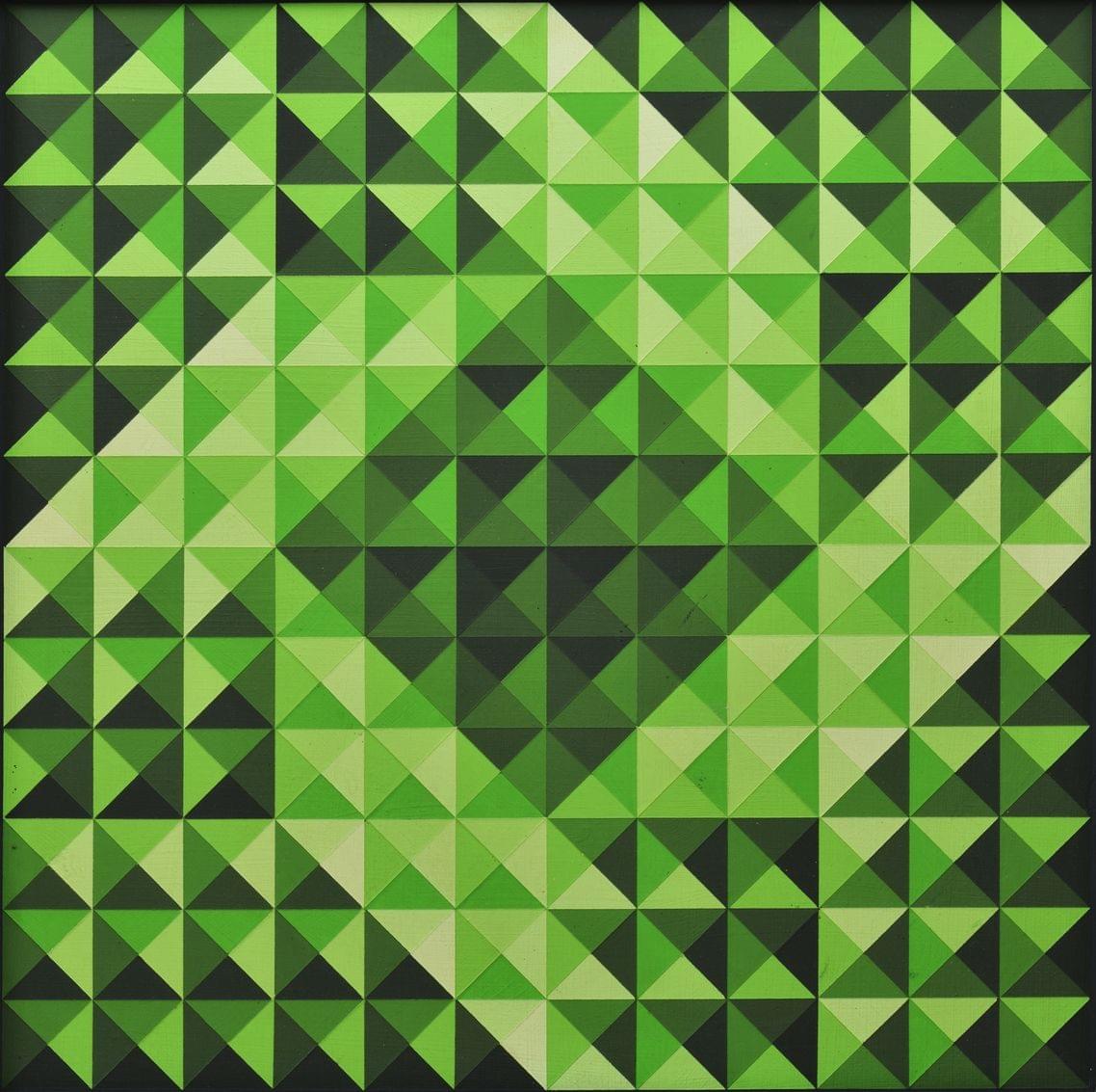 Structure carré diamants V (1972), huile sur pavatex titrée et signée au dos, 46x46 cm