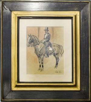 Cavalier élégant, crayon gras sur papier, signé, 24×19 cm