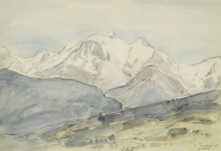 Montagnes enneigées, aquarelle sur papier, signée et datée 1937,...