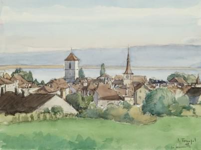 Vue de Neuchâtel, aquarelle sur papier, 16x27 cm. Provenance : C...