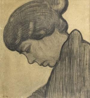 Portait de jeune garçon, fusain et craie blanche sur papier, 60x...