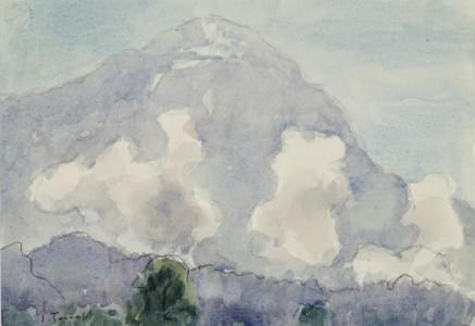 Montagne derrière les nuages, aquarelle sur papier, signée, 24x3...