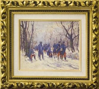 Soldats français dans la forêt, huile sur toile, signature illis...