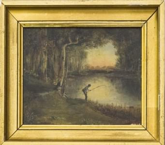 Pêcheur, huile sur panneau d'acajou, signée et datée 1887, 14x18...