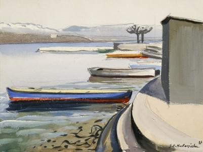 Le Môle, aquarelle et gouache sur papier, signée et datée printe...
