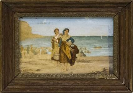 Jeunes femmes sur la plage dans la baie de Naples, huile sur pan...