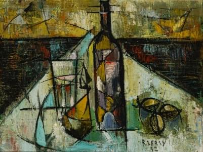 Nature morte à la bouteille, huile sur toile signée et datée 52,...