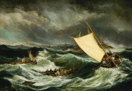Les paquebots la nuit, huile sur toile, signée et datée 1895, 50...