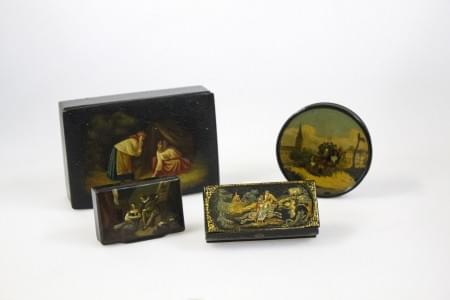 3641. Trois boîtes rectangulaires et une ronde, Russie et Angleterre,...
