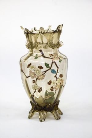 Vase balustre à décor émaillé de branches de prunus, pieds et co...