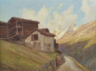 Village valaisan, huile sur toile, signée, 44x60 cm