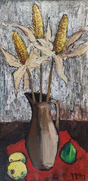 Vase aux épis de maïs, huile sur toile, signée, 80x40 cm