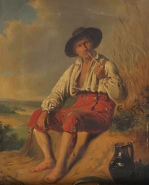 Paysans à la pipe, huile sur toile, monogrammée et datée 1843, 3...
