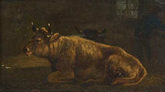 Vaches à l'étable, huile sur panneau, 17x31 cm