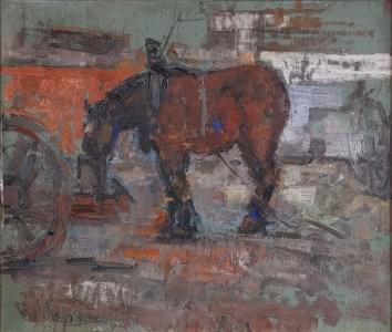 Cheval de trait, huile sur panneau, signée, 38x45 cm