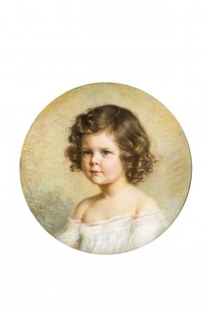 Portrait d'un enfant, miniature ovale sur porcelaine, cadre en b...