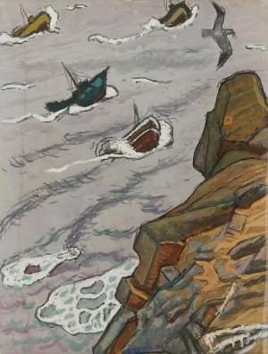 Bateaux dans les vagues, huile sur carton, 33x43 cm