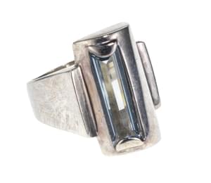 3007. *Bague stylisée sertie d'une topaze bleue taille rectangle