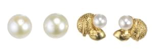L'un ponctué de perles d'eau douce baroques, fermoirs en or 750...