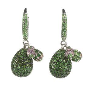 3030. *Boucles d'oreilles retenant quatre pendeloques à motifs d'œufs...