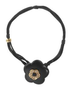 3072. Bracelet sur cordon orné d'un fermoir à motif de fleur en bois e...