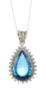 3074. *Pendentif serti d'une topaze bleue taille poire (15,1 ct) entou...
