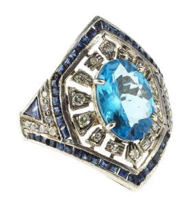 3082. *Bague de style Art déco centrée d'une topaze bleue taille ovale...