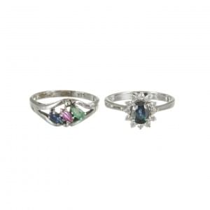 3152. Lot de deux bagues, l'une marguerite sertie d'un saphir entouré...