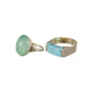 3250. Lot de deux bagues, l'une sertie d'une turquoise et l'autre d'un...