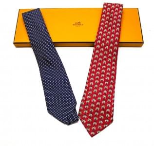Lot de deux cravates en soie à décors géométriques et à fonds bl...