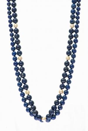 3078. Lot de deux colliers de perles de lapis lazuli, l'un ponctué de...